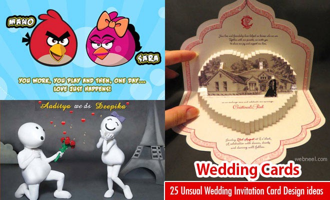 Wedding Card Design : Every bride wants to plan an unforgettable wedding day. Funny or Unusual Wedding card designs add more funny memories in your wedding. In this post we have added unique and creative wedding invitation card designs for you. You can have the most gorgeous invites ever, but when it comes down to it, your wedding invitations are a functional detail. They should spell out all essential wedding info -- who's getting married, who's hosting and where, when and what time the ceremony will take place.