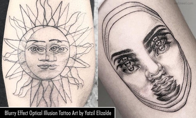 Mexican artist Yatzil Elizalde will make you focus two or three times on her optical illusion tattoos. Her tattoos feature two or three same designs which can trick your mind. Well our eyes are all blurry after taking a look at her creativity. Initially she started her career by creating illustrations, murals, digital art now however she inks on the human body. Many people call her tattoo art a double effect, trippy effect, however the artist likes to call them blurry effect tattoos. Greek mythological characters, three eyed faces are some of her favorite tattoo designs.