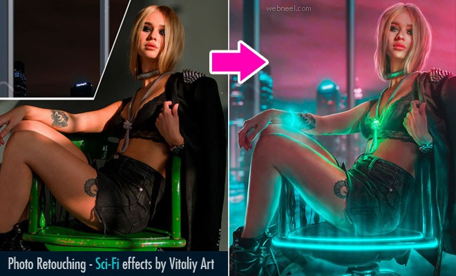 The sci-fi photo retouching artworks is the creation of a russian media group, popularly known as Vitaliy Arts. The introduction of CGI effects with neon light is an interesting photo editing feature. Vitaliy arts mostly creates photo editing and photo retouching for advertising campaigns, marketing, fashion and more. Vitaliy Petrov is the founder of Vitaliy art. He is a digital artist and his specialization is photo retouching using Adobe Photoshop and Adobe Illustrator.