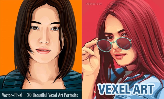 A combination of vector and pixel brings out the new form of art : Vexel art. Although both vector art and vexel art use Adobe Photoshop, the former uses shape layers from the pen tool and the latter uses raster layers. The raster layers are totally created from pixels. Pixels of different colors are grouped together to create beautiful vexel art portraits. Vector portrait illustrations are usually created in Adobe photoshop with an already available image.