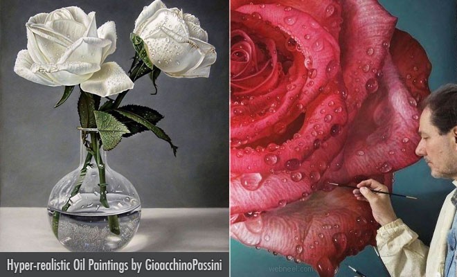 Mega sized hyper realistic oil paintings by Gioacchino Passini is not to be missed. The rose blooms feel so real, you just want to reach out and pluck them. The fresh dew drops on the rose petals is so impressive. The talented Italian artist is a creative painter and he enjoys playing on his violins. He currently lives and works from Crespellano, Bologna. Since 1973, he has set up many solo exhibitions and the latest was "Archaeology of the twentieth century" in 2014. Now who is excited to see more of his oil paintings, cause we are.