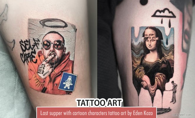 Eden Kozo @ kozo tattoo is a tattoo artist from Israel. He is quite talented and popular for his multi colored tattoo art. Last supper scene with cartoon characters is one of the unique funny tattoos created by the talented Eden Kozo(kozo tattoo). His tattoo art is inspired from popular cartoons, comic strips and more. His tattoo portraits are something of the extra-ordinary, he is quite creative with different themes like surrealism, 3d, funny and more. He was born in Qiryat Ono, Israel and currently lives and works from USA.