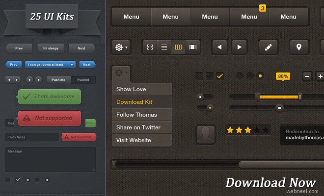 Free PSD UI Kits are helpful to the designers while designing websites and applications. These PSds make your tasks much easier with their pre designed professional elements. We have attached some of the best customizable UI psd files for you.