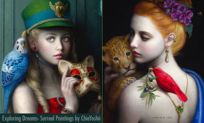 Chie Yoshii specializes in surreal art works and paintings. Born in Japan(1974), she moved to USA and completed her BFA degree from the University of Massachusetts. She studied under the naturalist artist Adrian Gottlieb from 2002 to 2008. Chie Yoshii uses oil paints for her explosive surreal artwork. Her surrealism artwork is inspired from old and traditional Flemish paintings. The quality of shading, softness of texture and character portrayal is impeccable.