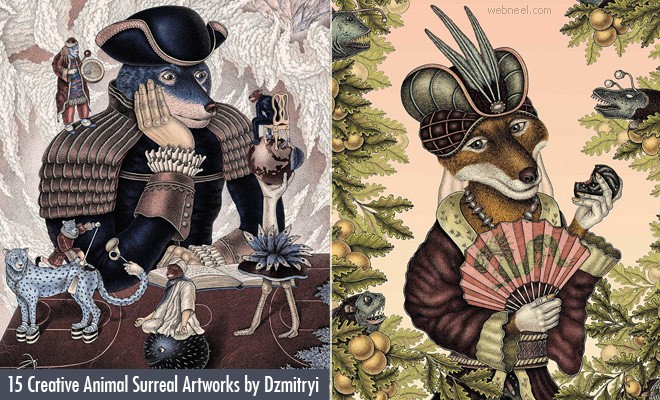 Surreal art works and Illustration : Dzmitryi Kashtalyan is an artist/illustrator from Minsk, Belarus. The artist uses animals as characters for portraying his surreal paintings. He creates his surreal paintings on walls, canvas, paper and in digital grapics. He enjoys hand painting his surreal illustrations, since it creates a special bond between the characters. The artist mostly chooses wild animals dressed up as lawyers, soldiers, judges etc alongwith some other characters. The artist draws inspiration from news, magazines, nature and more.