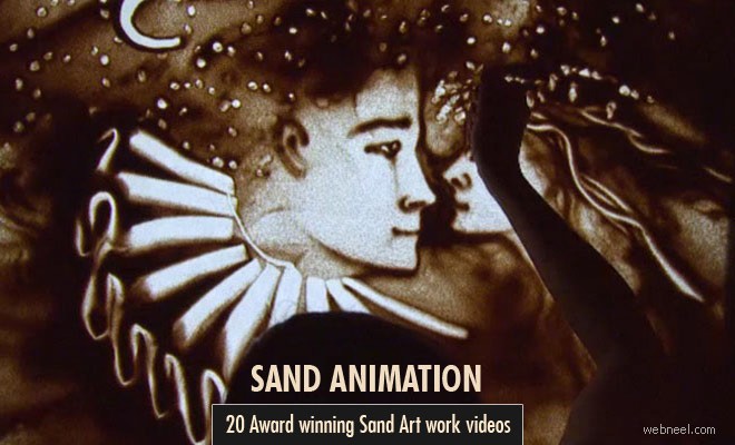 Sand Animation / Sand Art: There are two types of sand animation. In the first type, designs are drawn on sand and then the images are captured, it’s kind of similar to stop motion technique. The images are captured frame by frame and then rearranged. In the second type, the actual motion of sand art is captured on video. For this process, animators sometimes use some lighting effects to portray their artistic styles. In this post we have put together 15 award winning sand art works and Sand animation videos for your inspiration.