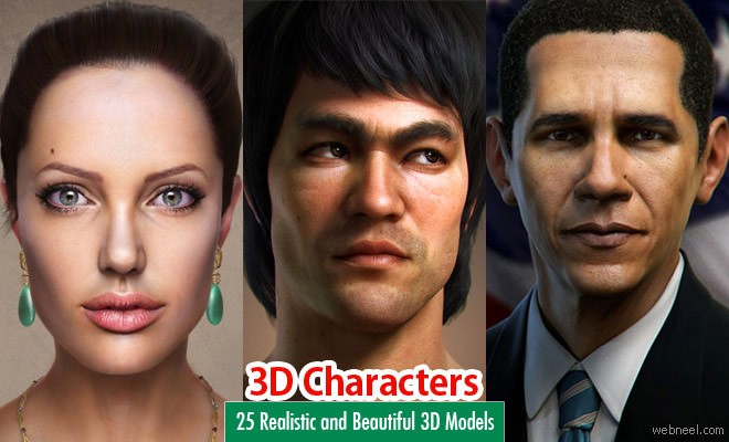 3D Character designs are mostly inspired from popular movies. The 3D models are mostly used in video games industry and short animation films. We particularly love the work of celebrity 3d model , Angelina Jolie created by Antonio Bonora. The skin texture, hair texture, clothes are very detailed and looks so realistic. The 3d models are so realistic, we can see the tears welling up in Gandhiji's eyes. Just looking at the 3d model, gives us goose bumps.