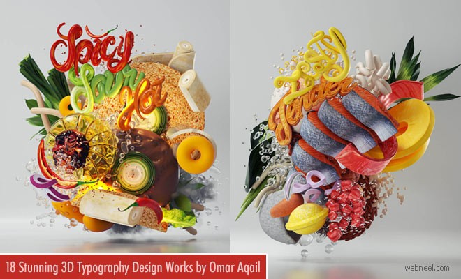 3D Typography Designs: Omar Aqail is a graphic designer from Pakistan. He has worked as an creative art director for leading brands. Omar Aqail recently created 'The Flavours of World Cuisines' with stunning 3d typography designs. If you look at the images, you can easily identify the cuisine of different continents with stunning visualizations. The experience is enthralling for the viewers since the 3D food bursts out of a white background making it a beautiful journey of the food.
