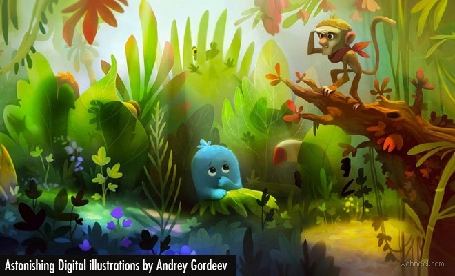 Digital illustrations of Andrey Gordeev, Russian illustrator has a portfolio full of award winning works. He is known for his charming characters and lighthearted humour, he's brought extra sparkle to campaigns for coca-cola, colgate, whiskas and many other global brands. The style and substance in his works are simply incredible, the characters are very simple but profoundly establishes the message and mood for the viewers. The illustrations made for Monte, The Toothless Monster, that lives in the rain forest with his friends are of unique style crafting astonishing impressions.