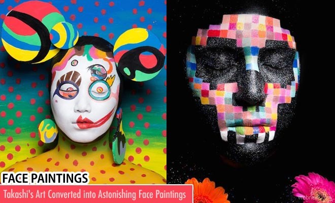 Face Paintings: Takashi Murakami is internationally renowed contemporary artist of Japan know for his "superflat" aesthetics which describes both Japanese artistic tradition and the nature of post war culture and society. Takashi works in fine arts media such as Painting and Sculpture and commercial media such as fashion,merchandise and animation is known for blurring the line between high and low arts.