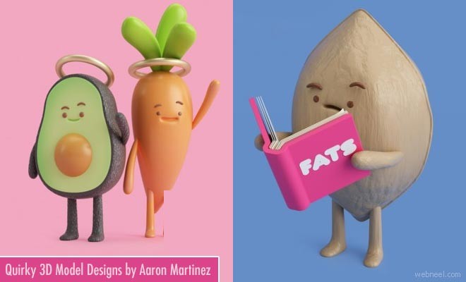 3D Models : Aaron Martinez is an Mexican artist and graphic designer who has a crazy passion to create fanciful illustrations. Cute and admirable series of 3D illustrations created for women's health magazine by Aaron is bringing life to all food items. He has a unique playful and humorous 2D and 3D illustrations which doesn't match with anything around. Aaron has the capacity to turn even the most unusual item into an extra-ordinary and vibrant character.