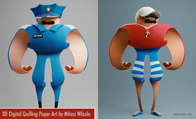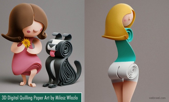 Quilling Paper Art: Quilling is the latest fad amongst hobby seekers, but this artist has taken it to a whole new level. Milosz Wlazlo is a graphic designer, animation director, illustrator and artist from Poland. He enjoys creating characters out of paper and his latest collection is the quilling paper art characters.They look so vibrant, colorful and they look so simple. His quilling paper models of a big baby, hefty policeman, lovely yung lady are simply astonishing and they will look so cute on animations.