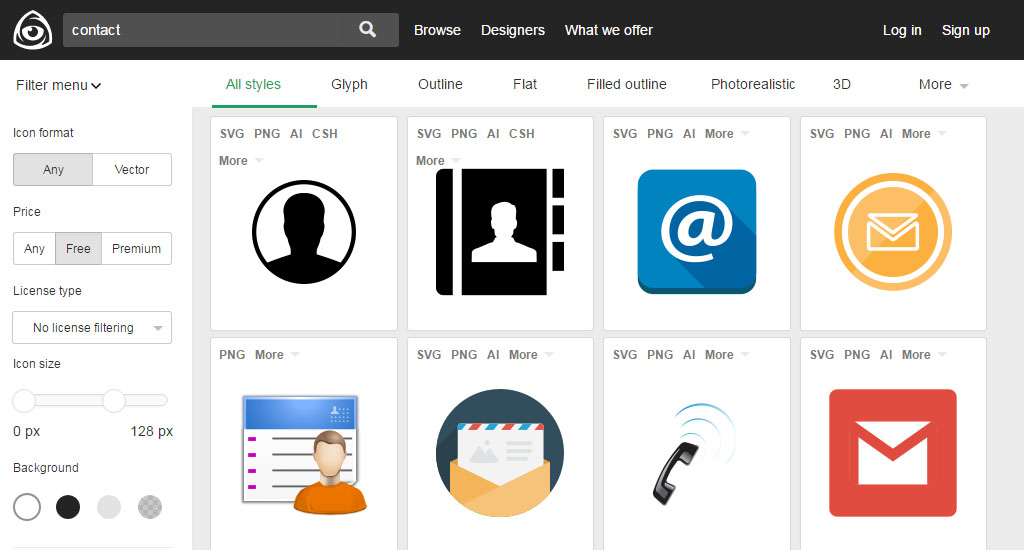 As its name suggests, FindIcons.com is an icon search engine helps you find free icons. We have the largest searchable free icons database in the world and both a sophisticated search filtering and result matching system make it possible for you to get an icon you need for every design task.